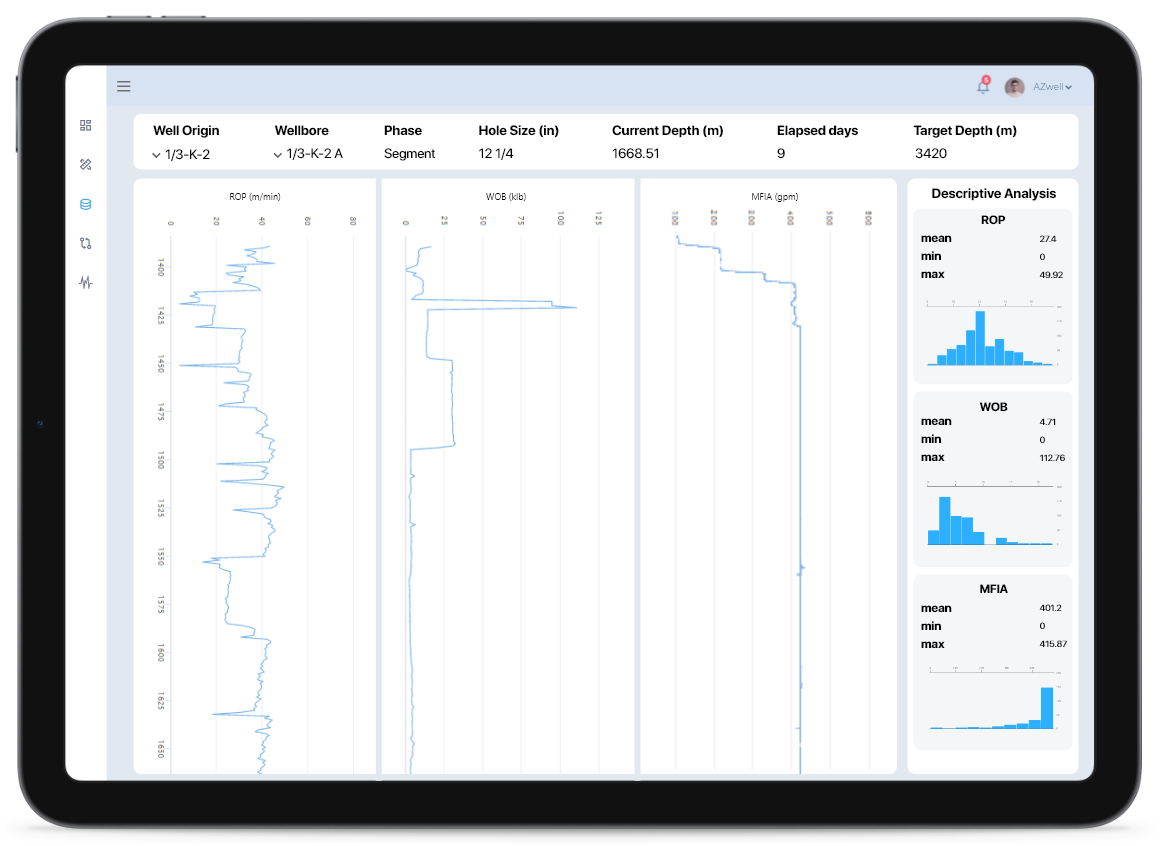 The integrated platform allows companies to transfer real-time data as input to the Analyser module, which provides recommended values for drilling parameters and predictions for ROP (Rate of Penetration).