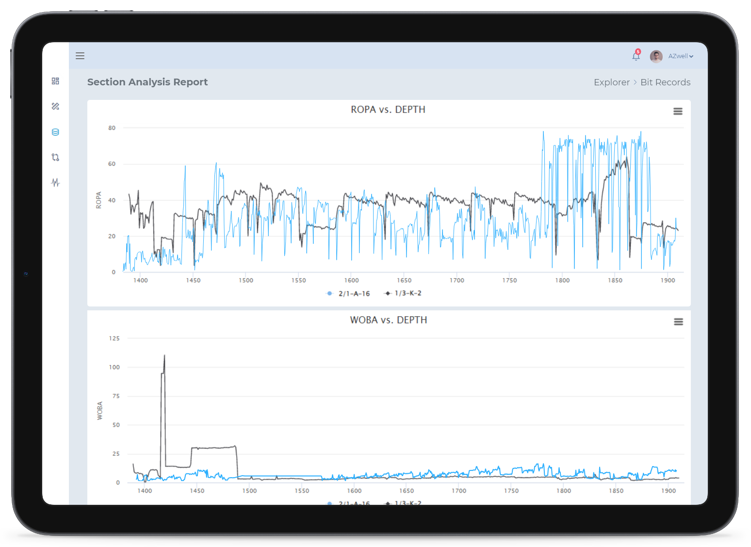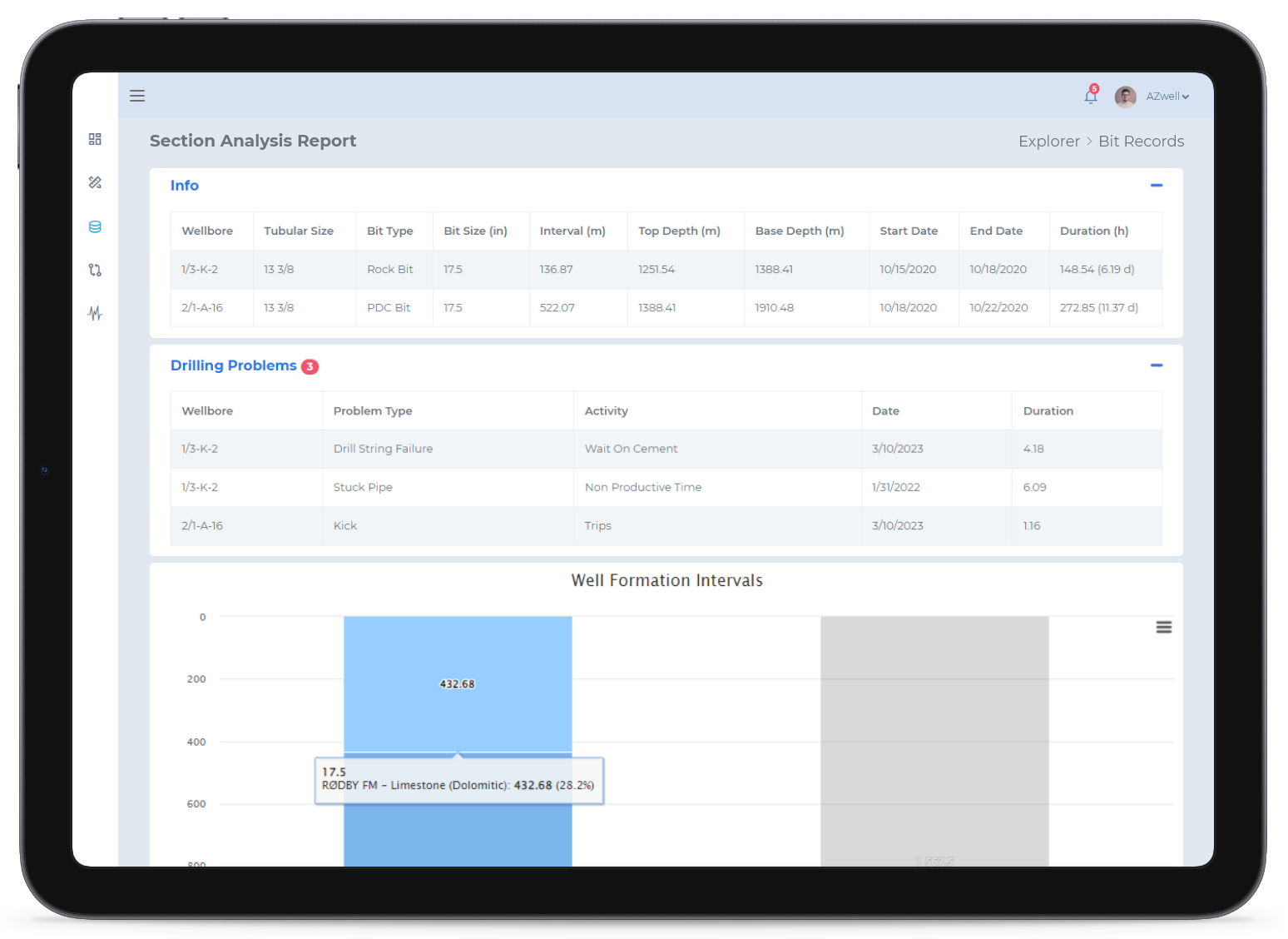 Comparing the drilled intervals across multiple wells is a helpful approach for understanding potential challenges and estimating drilling time. Engineers can use a section analysis tool to review the drilled well sections and make decisions based on offset well data.